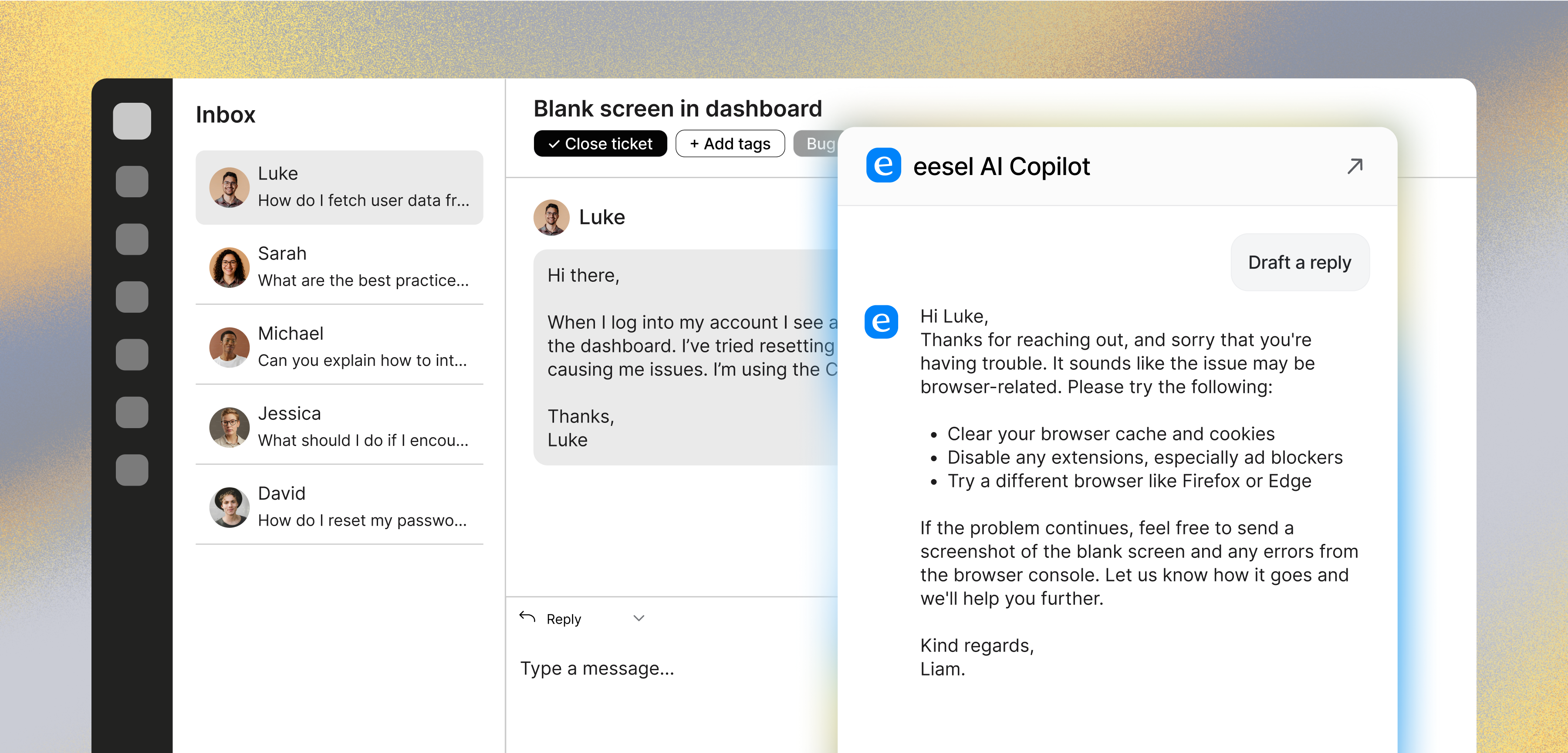 AI agents and copilot to streamline support